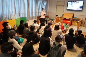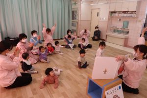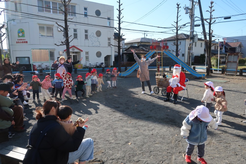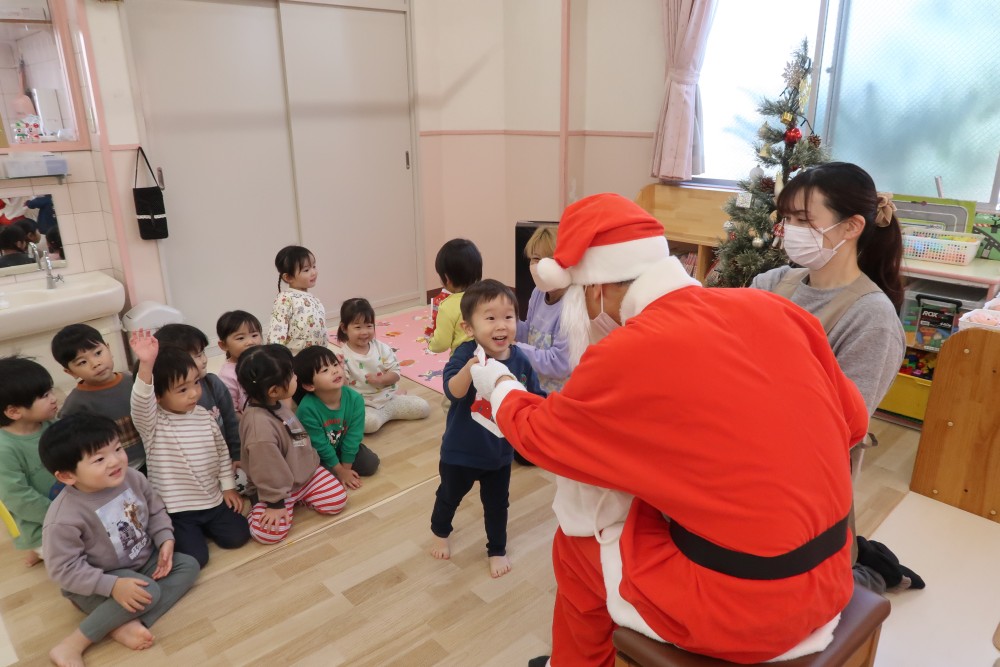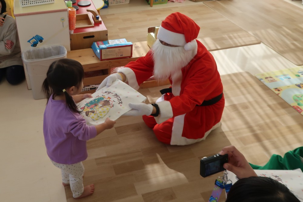 地域の未就学園児のお友達と一緒に、クリスマス会をしました。大きな袋を背負ったサンタさんがみんなの所へ来てくれました!クリスマスのお話を聞いたり、踊りを踊ったり、プレゼントをもらったりしました🎄