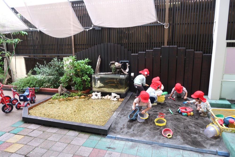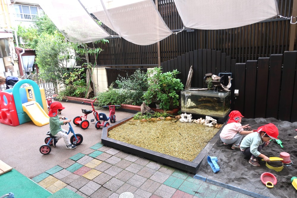 暑さも和らぎ、お散歩や園庭で遊べる日が増えました。園庭でも様々な種類の遊びから、自分の好きな遊びを見つけて楽しんでる子ども達です。