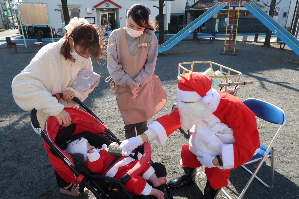 地域の未就学園児のお友達と一緒に、クリスマス会をしました。大きな袋を背負ったサンタさんがみんなの所へ来てくれました!クリスマスのお話を聞いたり、踊りを踊ったり、プレゼントをもらったりしました🎄
