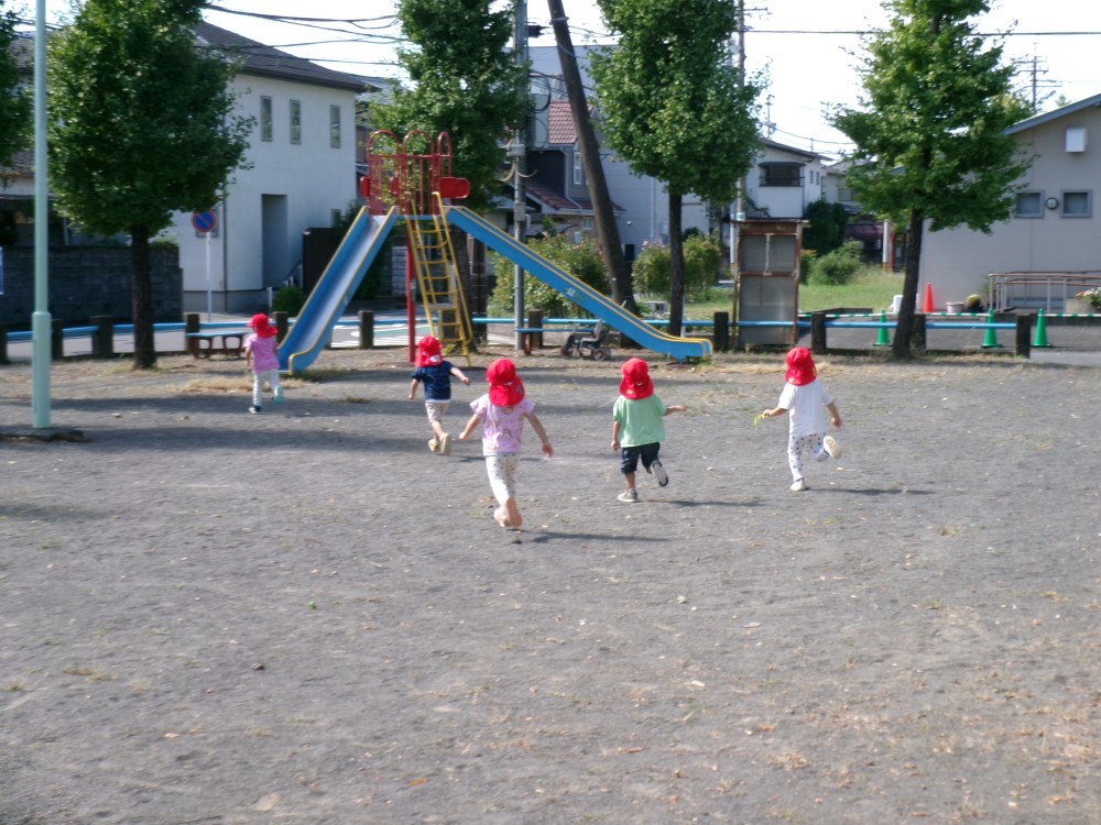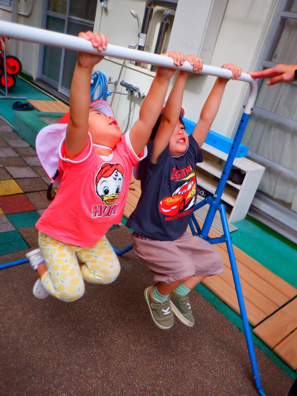10月は暑さもようやくやわらぎ、戸外や室内で沢山の運動遊びを楽しみました。鉄棒に平均台、鉄棒やマットなど運動用具を使って運動遊びを楽しみました。公園では保育者や友だちと追いかけっこをして楽しみながら沢山走りました。運動が得意になって“運動会ごっこ”で日頃の成果を見せ合いました。
